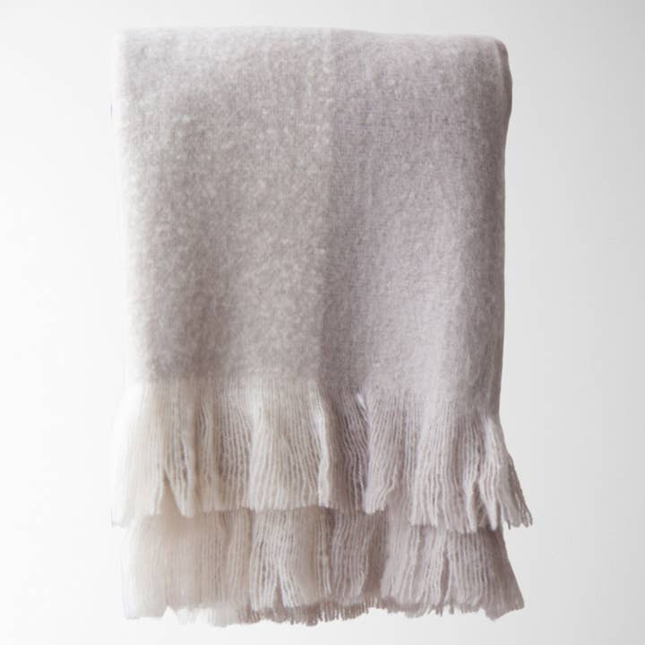 Discover the elegance of the Farah Two-Tone Throw Blanket, a standout faux mohair or as we call it, 'vegan mohair'. This luxurious throw offers all the softness and warmth of traditional mohair but is entirely animal-free and eco-friendly. Featuring a striking two-tone design, this throw is half-cream and half-color, creating a sophisticated, modern look that complements any décor. The carefully curated color palette adds a touch of elegance, making it a perfect addition to your living room or bedroom. Upgrade your space with the Farah Two-Tone Vegan Mohair Throw Blanket—where luxury meets sustainability."